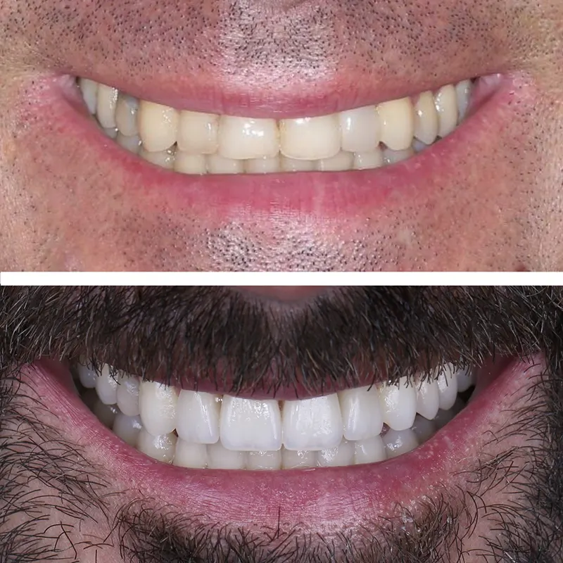 В результате лечения улыбка стала более яркой, гармоничной и естественной. Керамические реставрации позволили добиться ровной формы зубов и натурального оттенка. Имплантат в боковом отделе обеспечивает полноценную функцию жевания и поддерживает целостность зубного ряда. Улыбка пациента выглядит здоровой, ухоженной и уверенной.